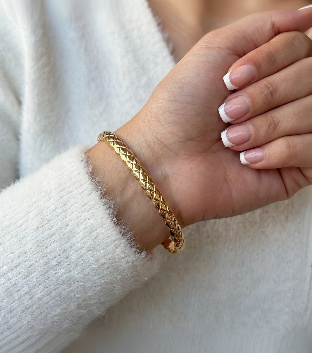 Narrow Gold Quilted Bangle
